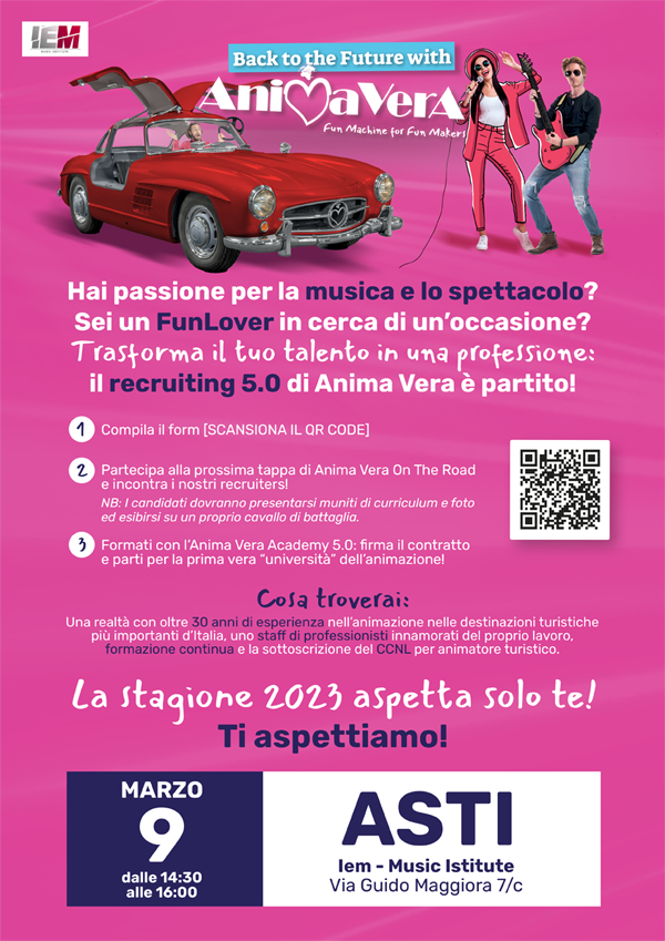Compila il form [SCANSIONA IL QR CODE] epartecipa ai colloqui in una delle tappe di"Anima Vera On Tour".